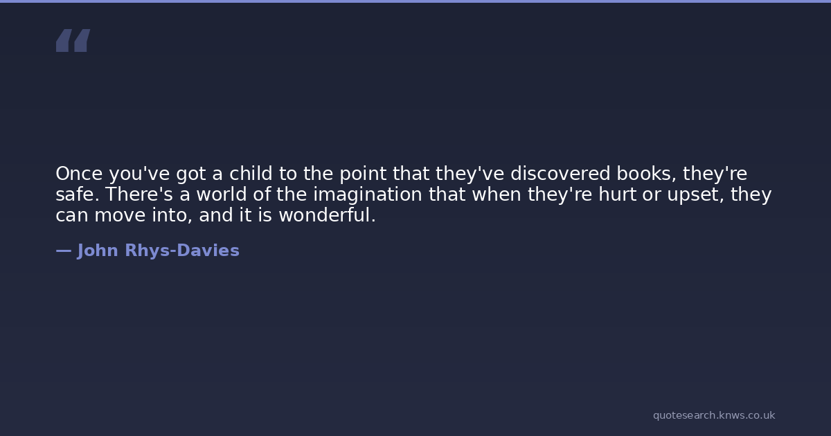Once you've got a child to the point that they've discovered books, they're safe. There's a world of the imagination that when they're hurt or upset, they can move into, and it is wonderful.