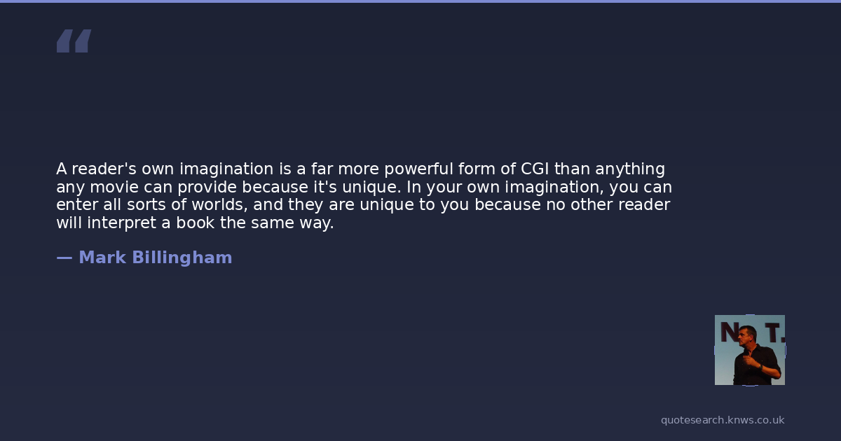 A reader's own imagination is a far more powerful form of CGI than anything any movie can provide because it's unique. In your own imagination, you can enter all sorts of worlds, and they are unique to you because no other reader will interpret a book the same way.