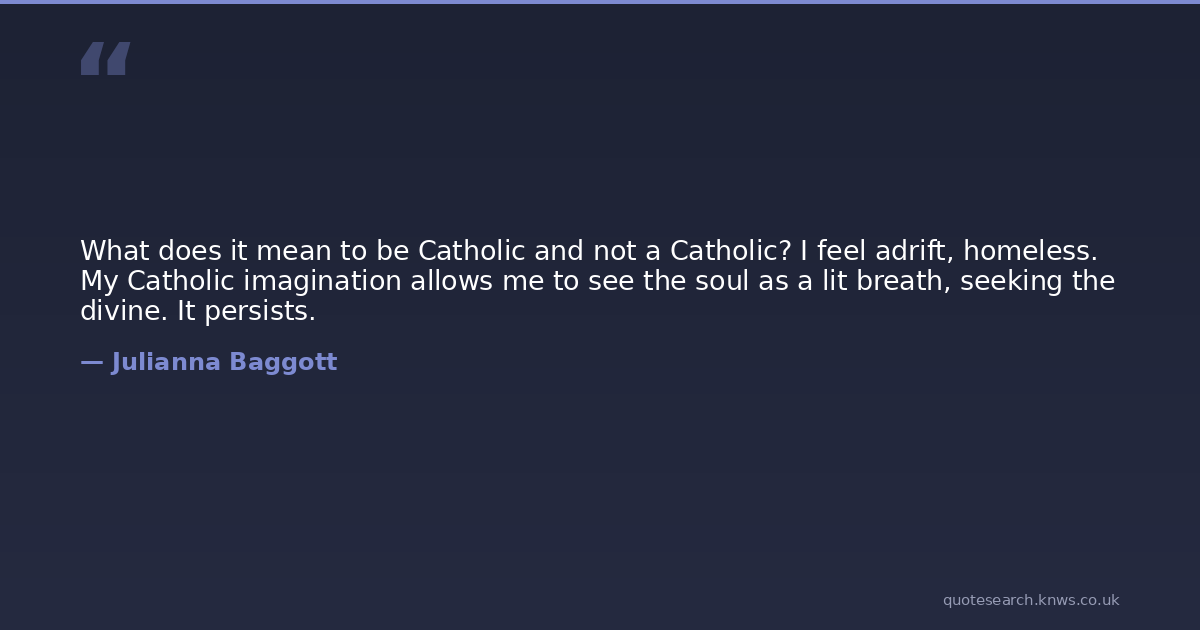 What does it mean to be Catholic and not a Catholic? I feel adrift, homeless. My Catholic imagination allows me to see the soul as a lit breath, seeking the divine. It persists.