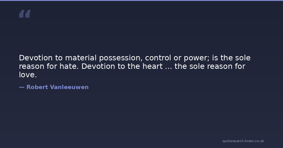 Devotion to material possession, control or power; is the sole reason for hate. Devotion to the heart ... the sole reason for love.