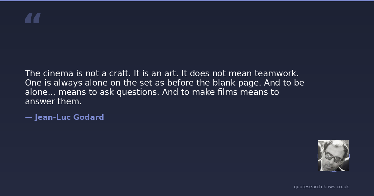 The cinema is not a craft. It is an art. It does not mean teamwork. One is always alone on the set as before the blank page. And to be alone... means to ask questions. And to make films means to answer them.