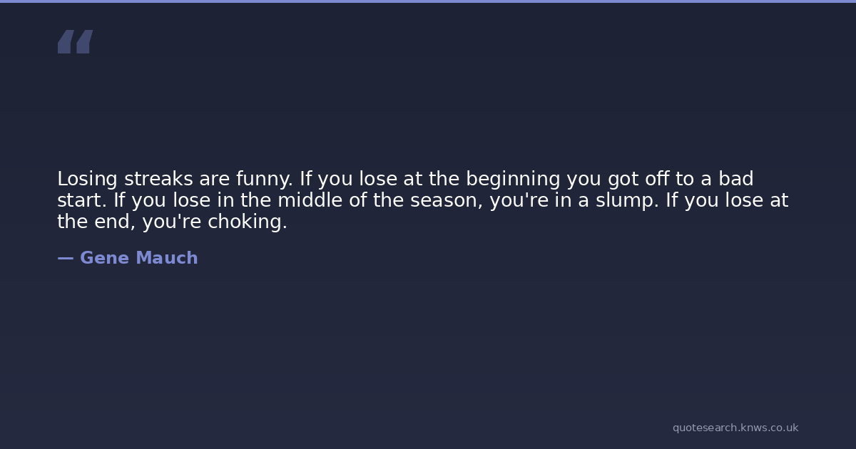 Losing streaks are funny. If you lose at the beginning you got off to a bad start. If you lose in the middle of the season, you're in a slump. If you lose at the end, you're choking.