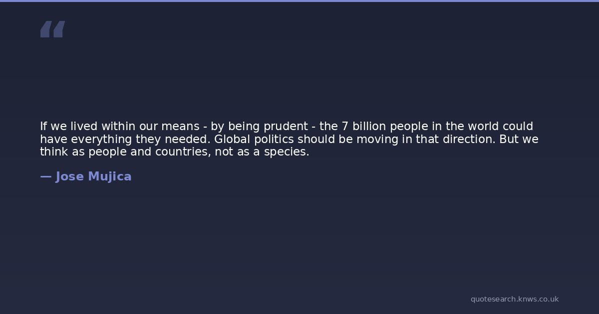If we lived within our means - by being prudent - the 7 billion people in the world could have everything they needed. Global politics should be moving in that direction. But we think as people and countries, not as a species.