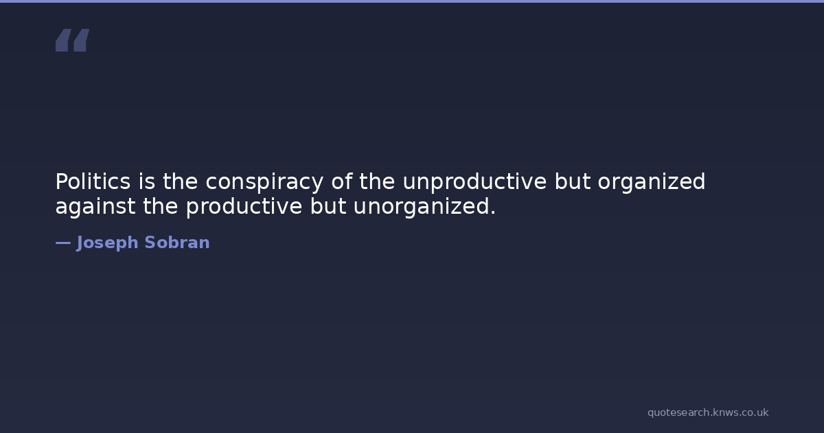 Politics is the conspiracy of the unproductive but organized against the productive but unorganized.