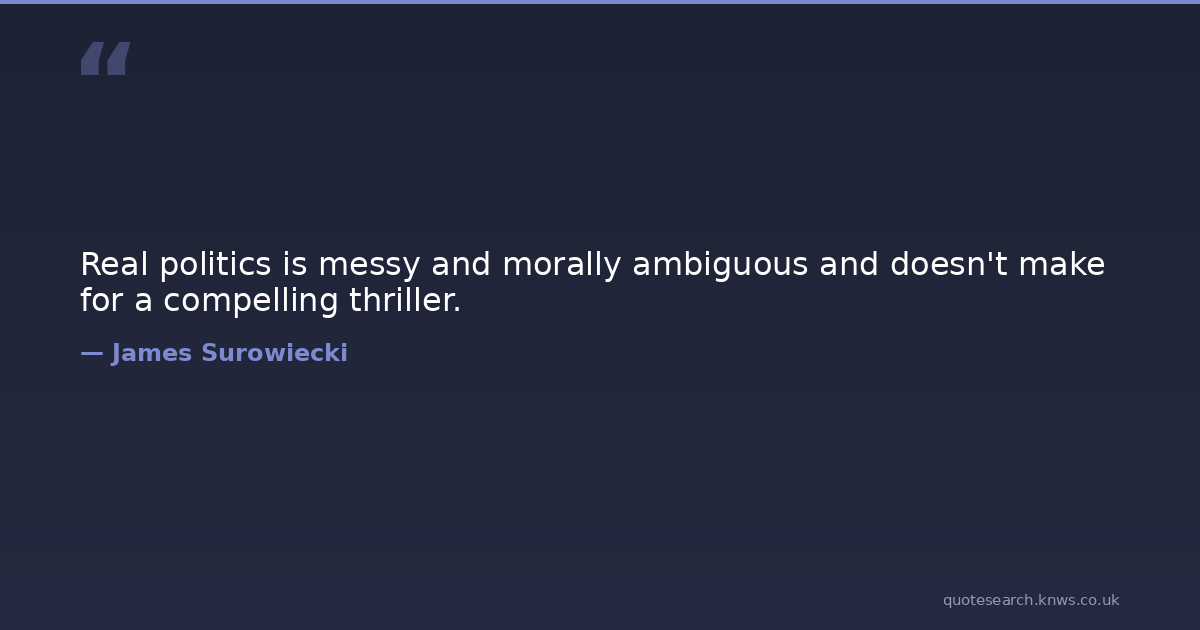 Real politics is messy and morally ambiguous and doesn't make for a compelling thriller.