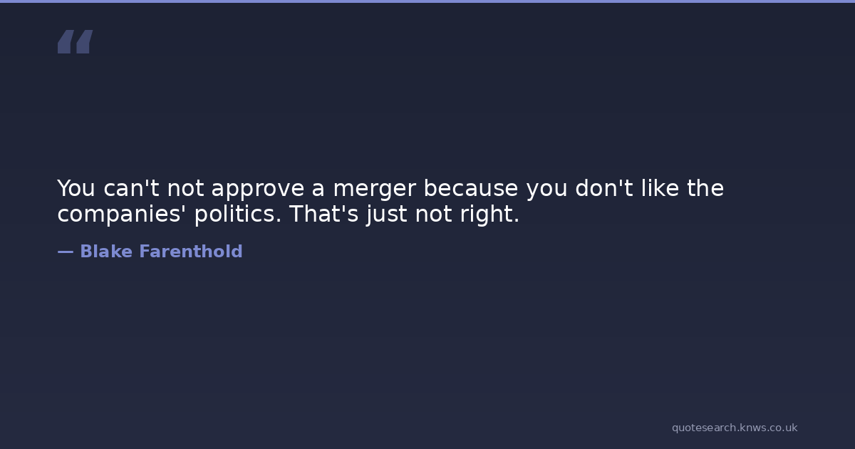 You can't not approve a merger because you don't like the companies' politics. That's just not right. You Right Like Download Image Share on X Share on Facebook Copy Link