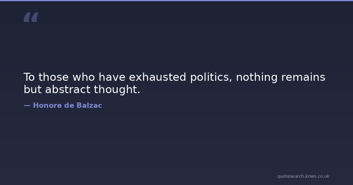 To those who have exhausted politics, nothing remains but abstract thought.