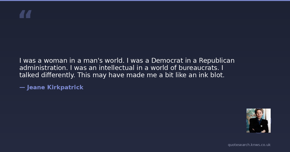 I was a woman in a man's world. I was a Democrat in a Republican administration. I was an intellectual in a world of bureaucrats. I talked differently. This may have made me a bit like an ink blot.