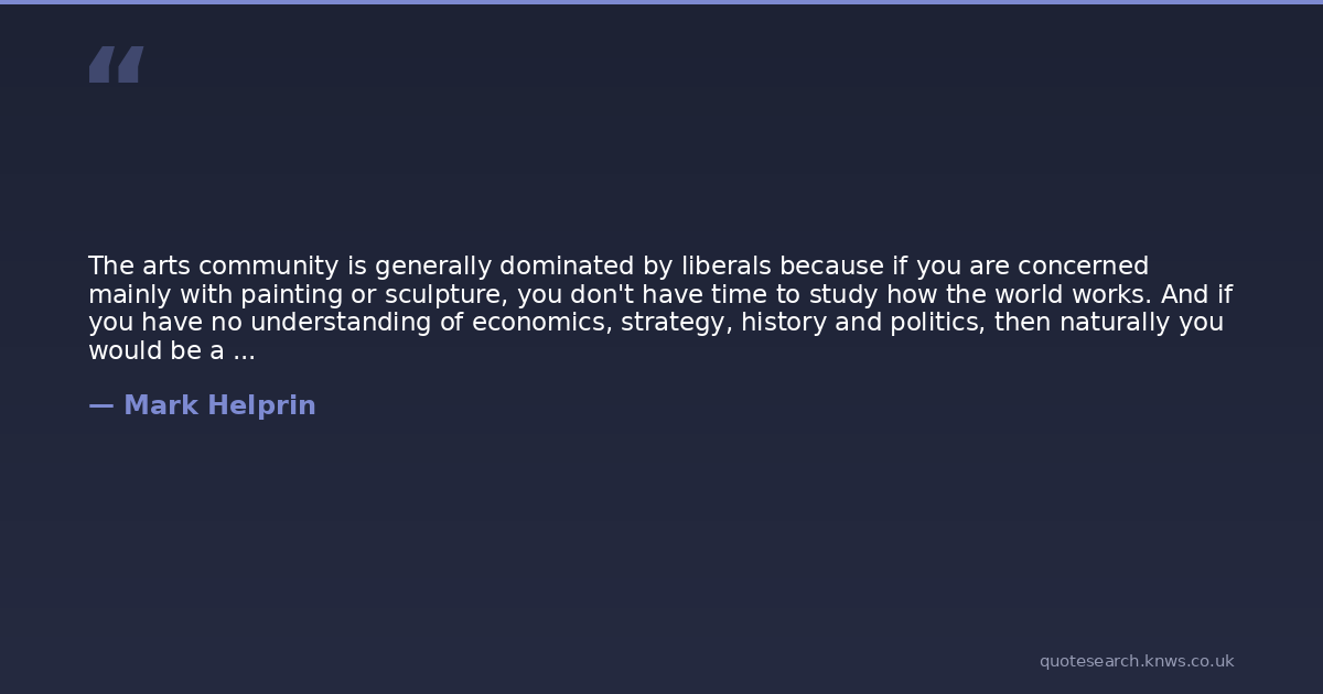 The arts community is generally dominated by liberals because if you are concerned mainly with painting or sculpture, you don't have time to study how the world works. And if you have no understanding of economics, strategy, history and politics, then naturally you would be a liberal.