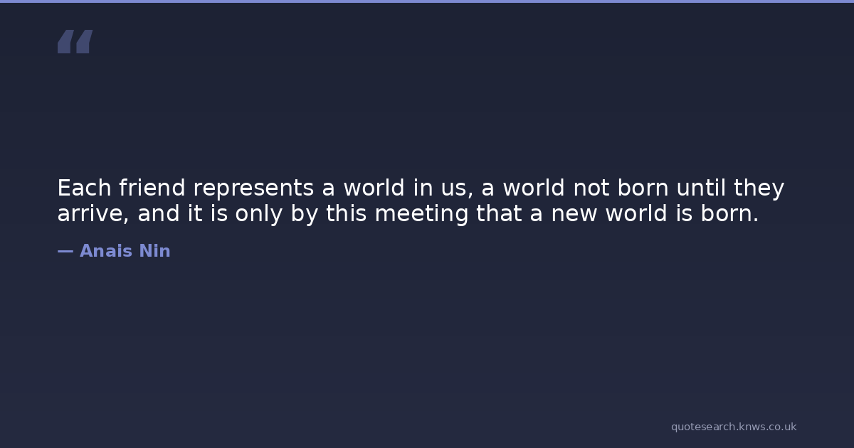 Each friend represents a world in us, a world not born until they arrive, and it is only by this meeting that a new world is born.