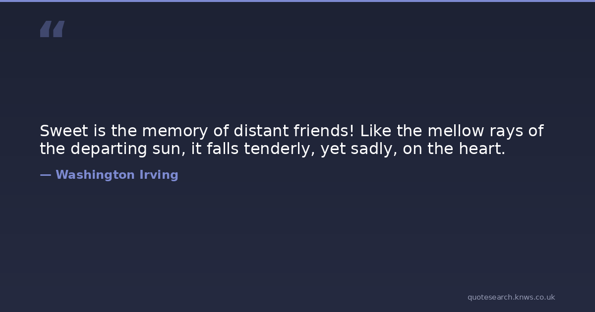 Sweet is the memory of distant friends! Like the mellow rays of the departing sun, it falls tenderly, yet sadly, on the heart.