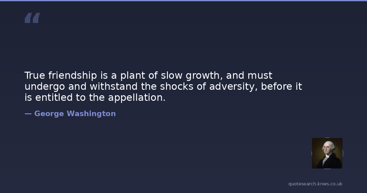 True friendship is a plant of slow growth, and must undergo and withstand the shocks of adversity, before it is entitled to the appellation.