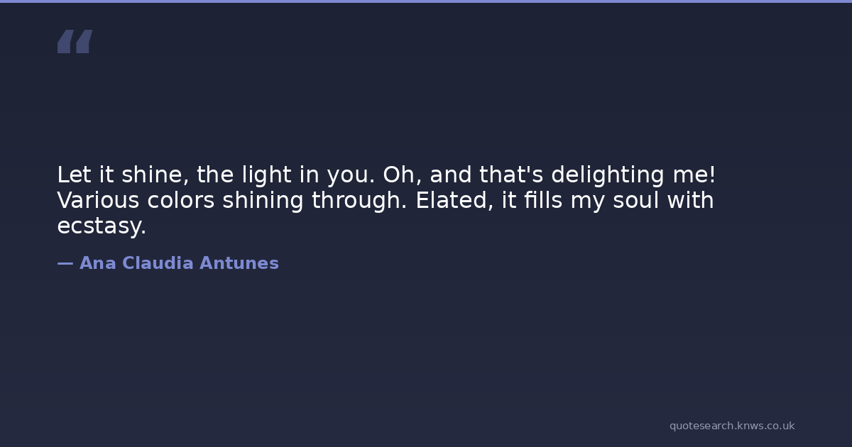Let it shine, the light in you. Oh, and that's delighting me! Various colors shining through. Elated, it fills my soul with ecstasy.