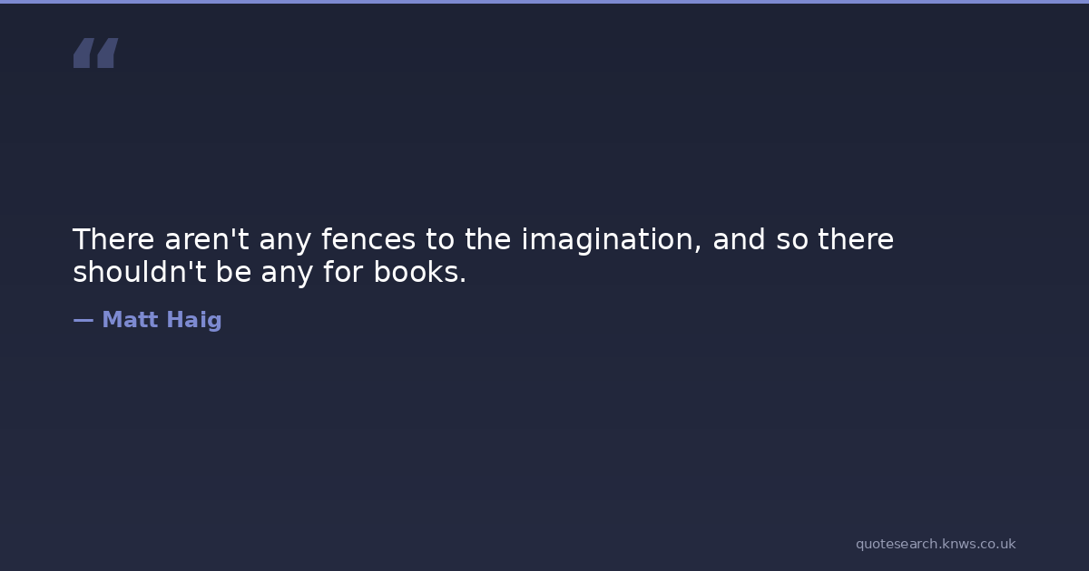 There aren't any fences to the imagination, and so there shouldn't be any for books.