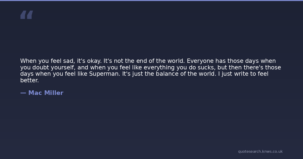 When you feel sad, it's okay. It's not the end of the world. Everyone has those days when you doubt yourself, and when you feel like everything you do sucks, but then there's those days when you feel like Superman. It's just the balance of the world. I just write to feel better.