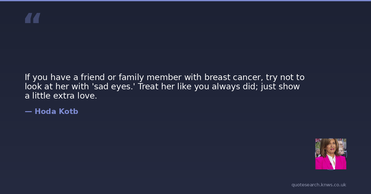 If you have a friend or family member with breast cancer, try not to look at her with 'sad eyes.' Treat her like you always did; just show a little extra love.