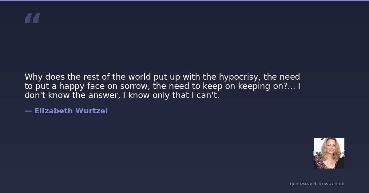Why does the rest of the world put up with the hypocrisy, the need to put a happy face on sorrow, the need to keep on keeping on?... I don't know the answer, I know only that I can't.