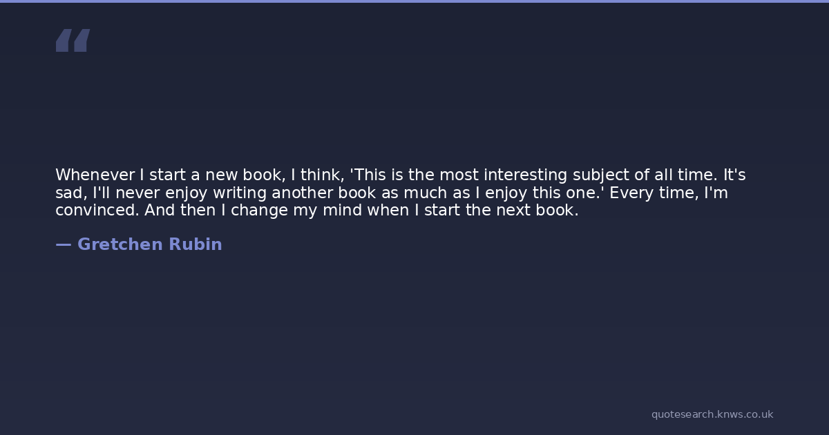Whenever I start a new book, I think, 'This is the most interesting subject of all time. It's sad, I'll never enjoy writing another book as much as I enjoy this one.' Every time, I'm convinced. And then I change my mind when I start the next book.