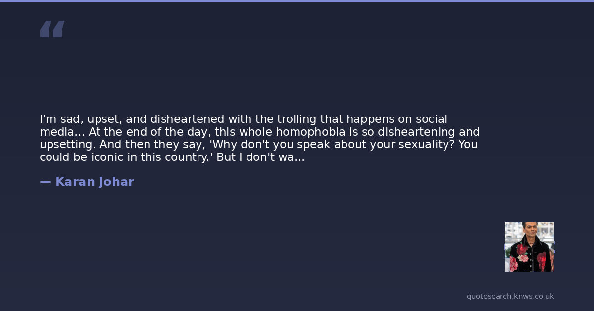 I'm sad, upset, and disheartened with the trolling that happens on social media... At the end of the day, this whole homophobia is so disheartening and upsetting. And then they say, 'Why don't you speak about your sexuality? You could be iconic in this country.' But I don't want to be iconic anywhere. I want to live my life.