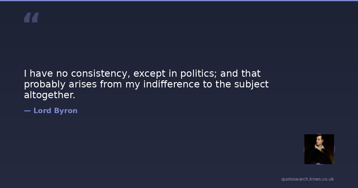 I have no consistency, except in politics; and that probably arises from my indifference to the subject altogether.