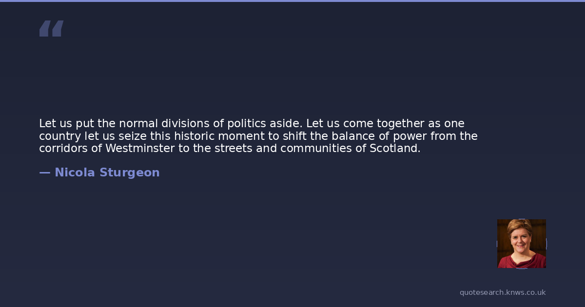Let us put the normal divisions of politics aside. Let us come together as one country let us seize this historic moment to shift the balance of power from the corridors of Westminster to the streets and communities of Scotland.