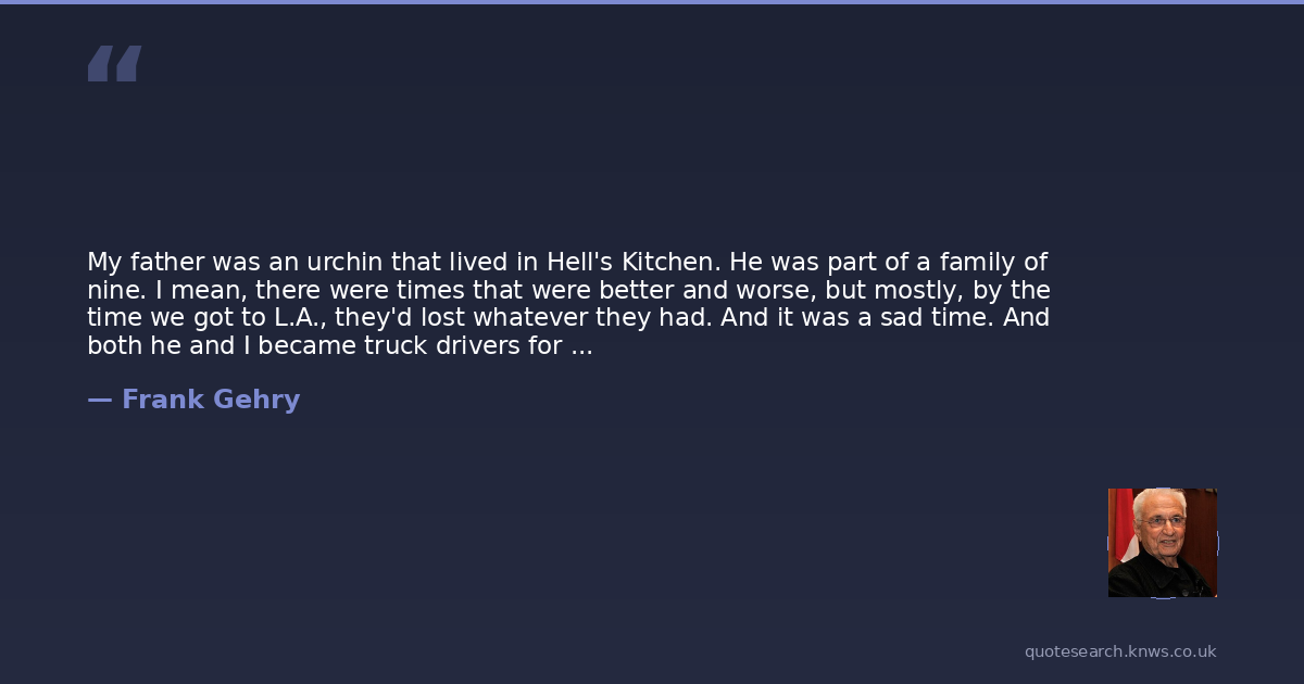My father was an urchin that lived in Hell's Kitchen. He was part of a family of nine. I mean, there were times that were better and worse, but mostly, by the time we got to L.A., they'd lost whatever they had. And it was a sad time. And both he and I became truck drivers for different companies.