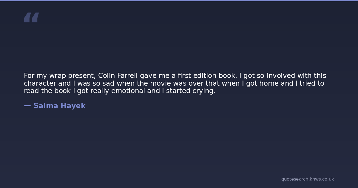 For my wrap present, Colin Farrell gave me a first edition book. I got so involved with this character and I was so sad when the movie was over that when I got home and I tried to read the book I got really emotional and I started crying.