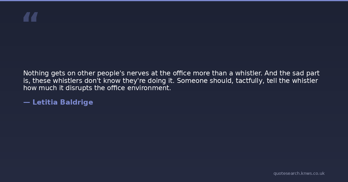 Nothing gets on other people's nerves at the office more than a whistler. And the sad part is, these whistlers don't know they're doing it. Someone should, tactfully, tell the whistler how much it disrupts the office environment.