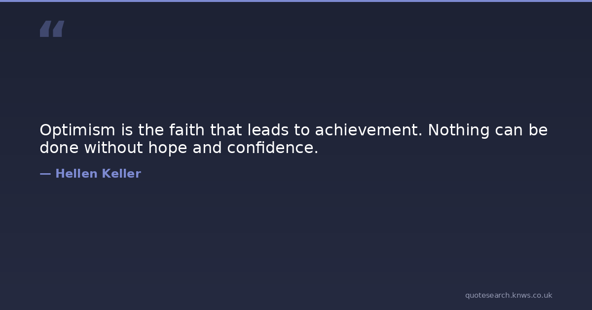 Optimism is the faith that leads to achievement. Nothing can be done without hope and confidence.