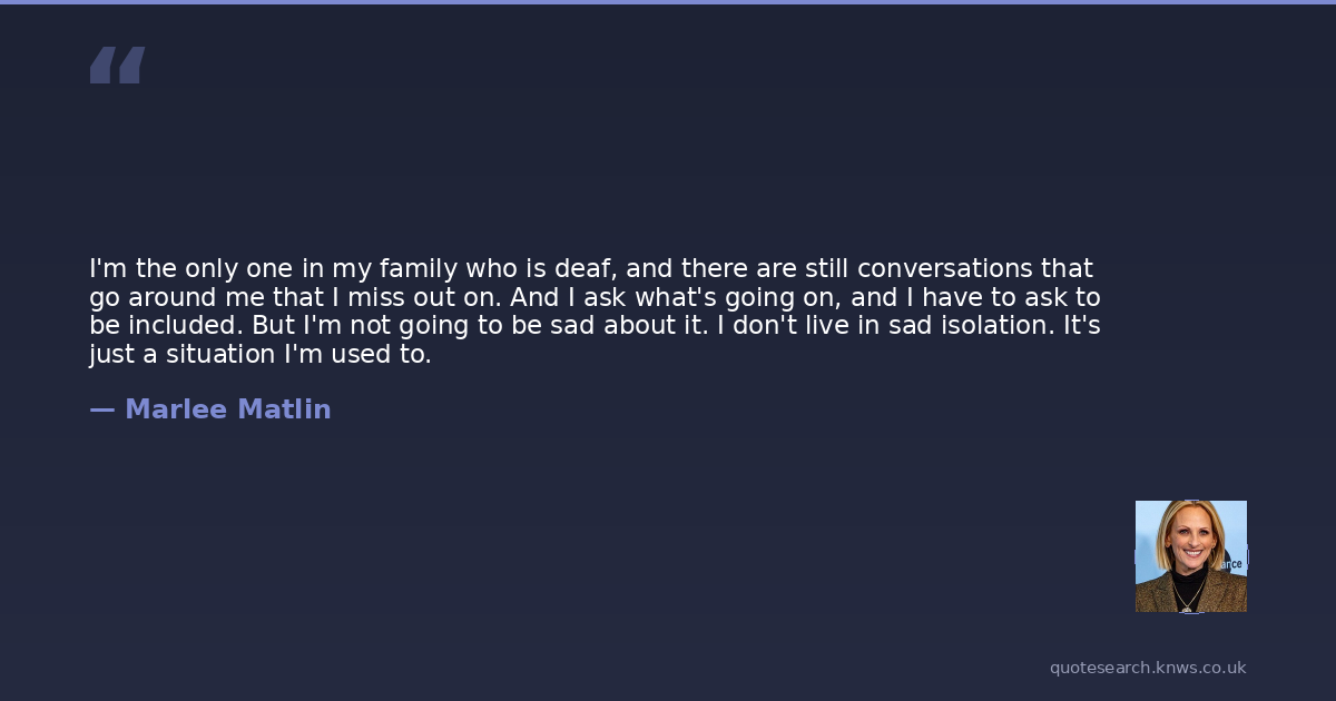 I'm the only one in my family who is deaf, and there are still conversations that go around me that I miss out on. And I ask what's going on, and I have to ask to be included. But I'm not going to be sad about it. I don't live in sad isolation. It's just a situation I'm used to.