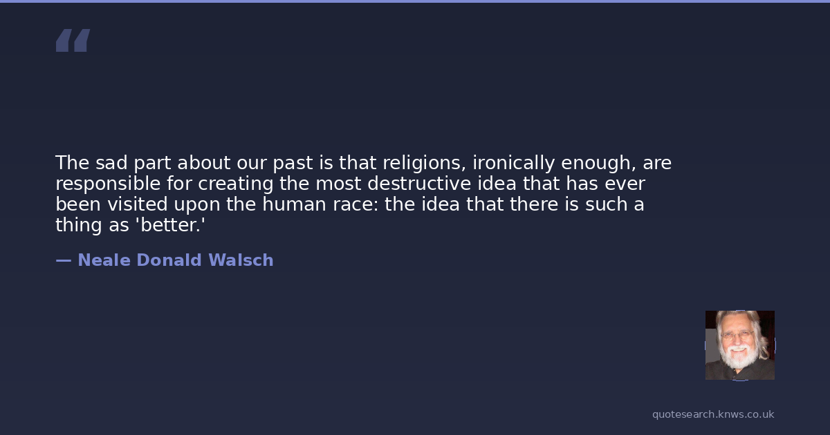 The sad part about our past is that religions, ironically enough, are responsible for creating the most destructive idea that has ever been visited upon the human race: the idea that there is such a thing as 'better.'