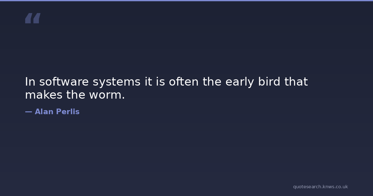 In software systems it is often the early bird that makes the worm.