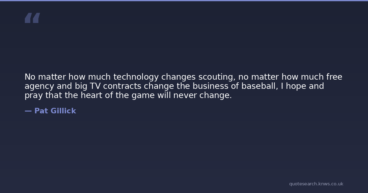 No matter how much technology changes scouting, no matter how much free agency and big TV contracts change the business of baseball, I hope and pray that the heart of the game will never change.
