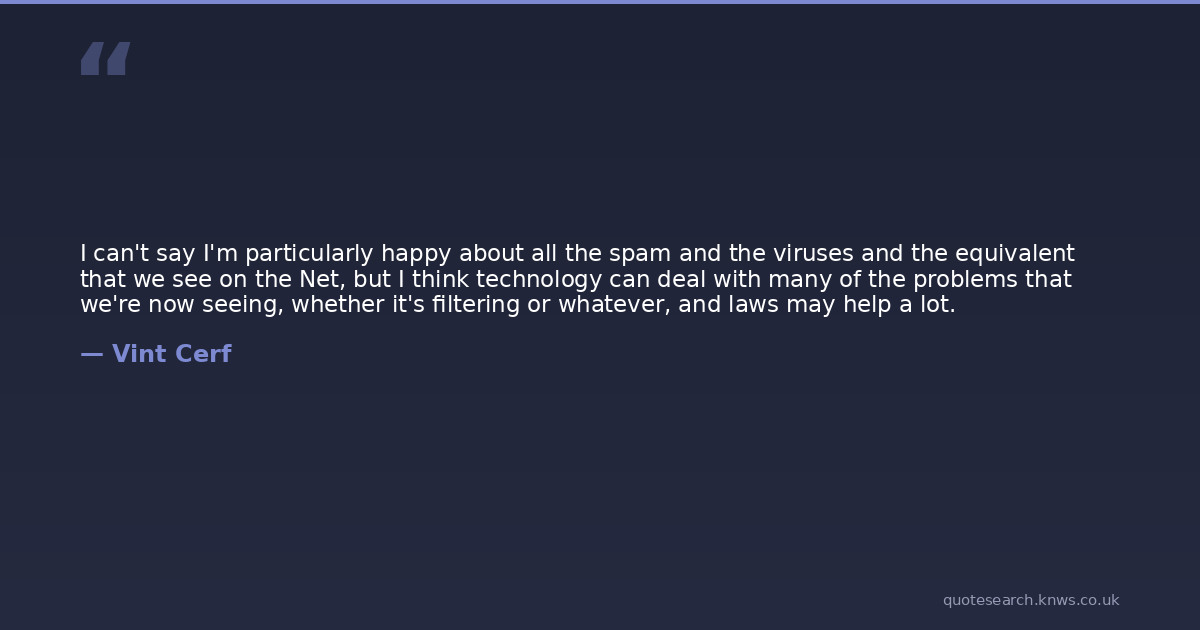 I can't say I'm particularly happy about all the spam and the viruses and the equivalent that we see on the Net, but I think technology can deal with many of the problems that we're now seeing, whether it's filtering or whatever, and laws may help a lot.