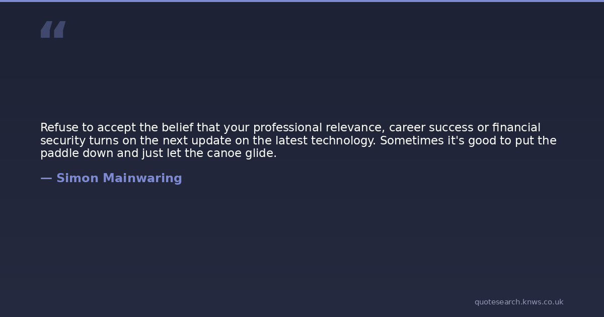 Refuse to accept the belief that your professional relevance, career success or financial security turns on the next update on the latest technology. Sometimes it's good to put the paddle down and just let the canoe glide.