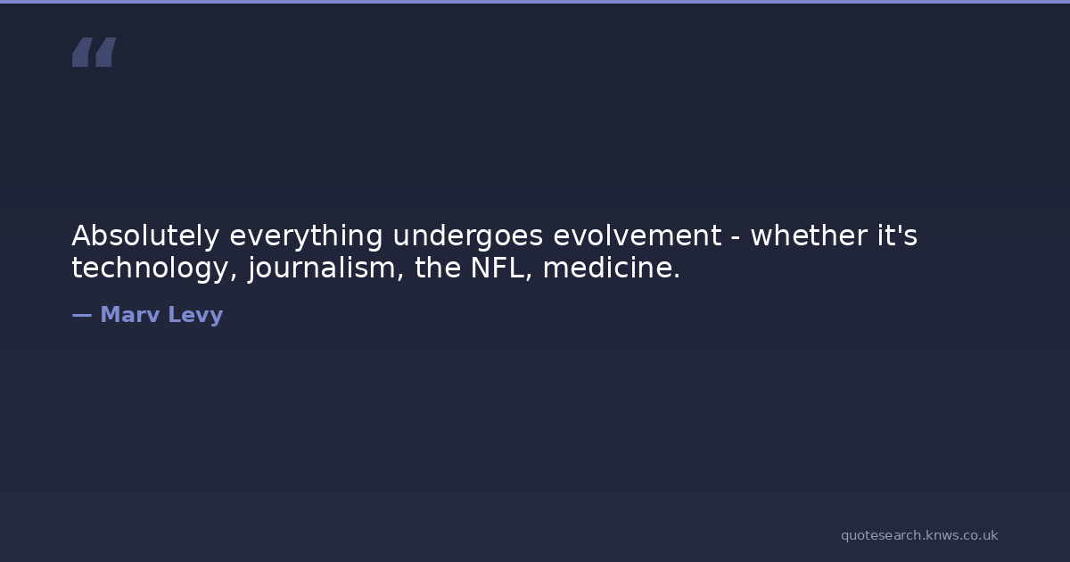 Absolutely everything undergoes evolvement - whether it's technology, journalism, the NFL, medicine. Medicine Journalism Download Image Share on X Share on Facebook Copy Link