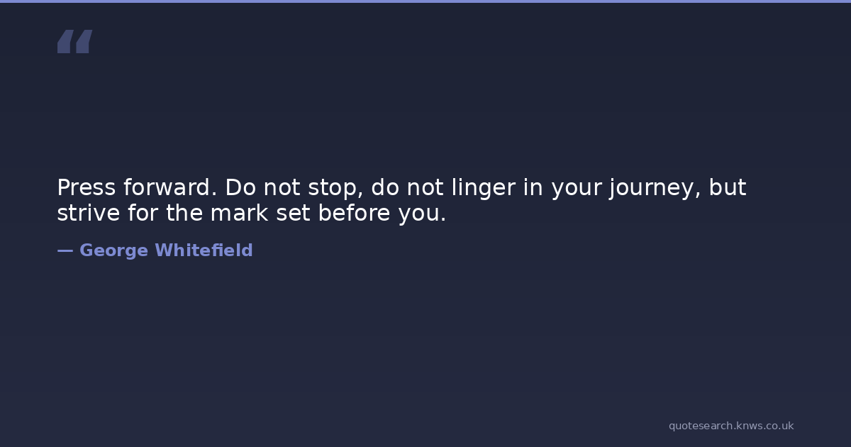 Press forward. Do not stop, do not linger in your journey, but strive for the mark set before you.