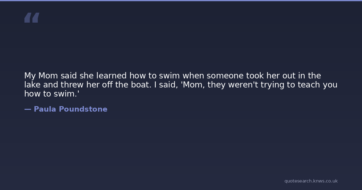 My Mom said she learned how to swim when someone took her out in the lake and threw her off the boat. I said, 'Mom, they weren't trying to teach you how to swim.'