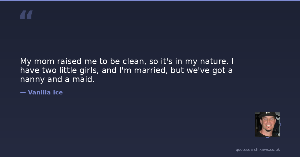 My mom raised me to be clean, so it's in my nature. I have two little girls, and I'm married, but we've got a nanny and a maid.
