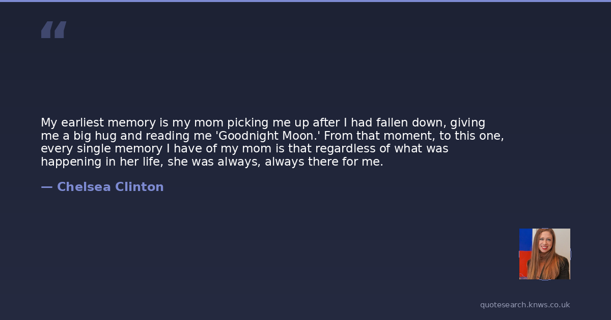 My earliest memory is my mom picking me up after I had fallen down, giving me a big hug and reading me 'Goodnight Moon.' From that moment, to this one, every single memory I have of my mom is that regardless of what was happening in her life, she was always, always there for me.