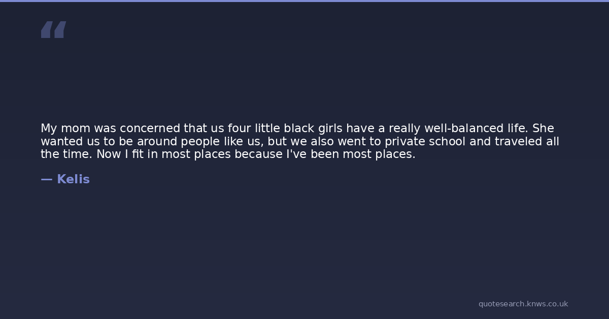 My mom was concerned that us four little black girls have a really well-balanced life. She wanted us to be around people like us, but we also went to private school and traveled all the time. Now I fit in most places because I've been most places.