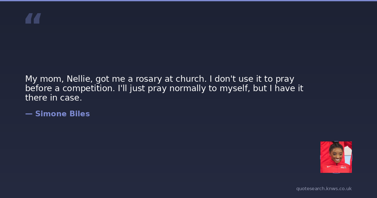 My mom, Nellie, got me a rosary at church. I don't use it to pray before a competition. I'll just pray normally to myself, but I have it there in case.