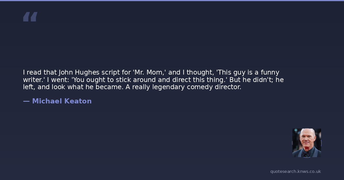 I read that John Hughes script for 'Mr. Mom,' and I thought, 'This guy is a funny writer.' I went: 'You ought to stick around and direct this thing.' But he didn't; he left, and look what he became. A really legendary comedy director.