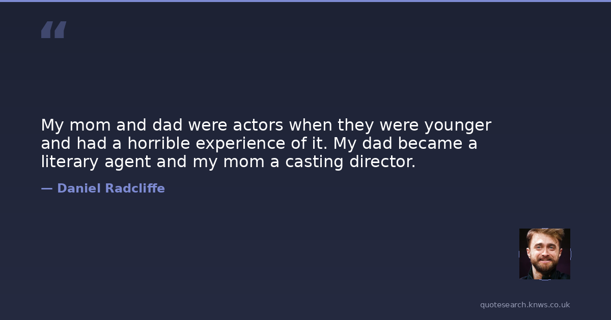 My mom and dad were actors when they were younger and had a horrible experience of it. My dad became a literary agent and my mom a casting director.