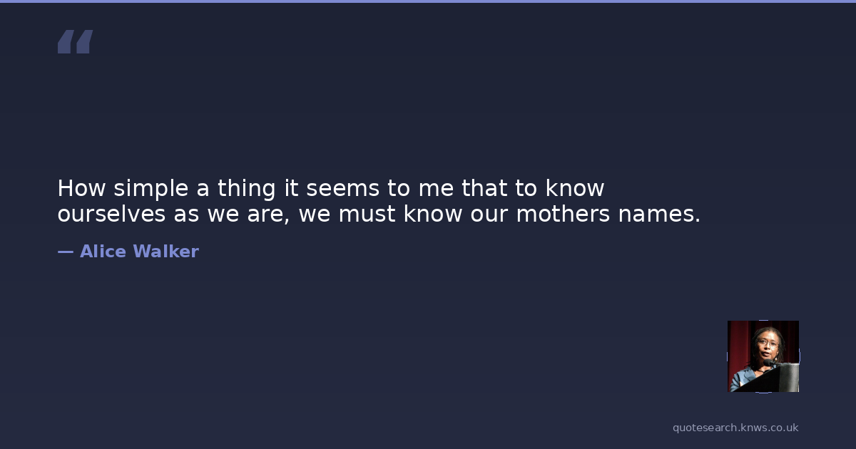 How simple a thing it seems to me that to know ourselves as we are, we must know our mothers names.