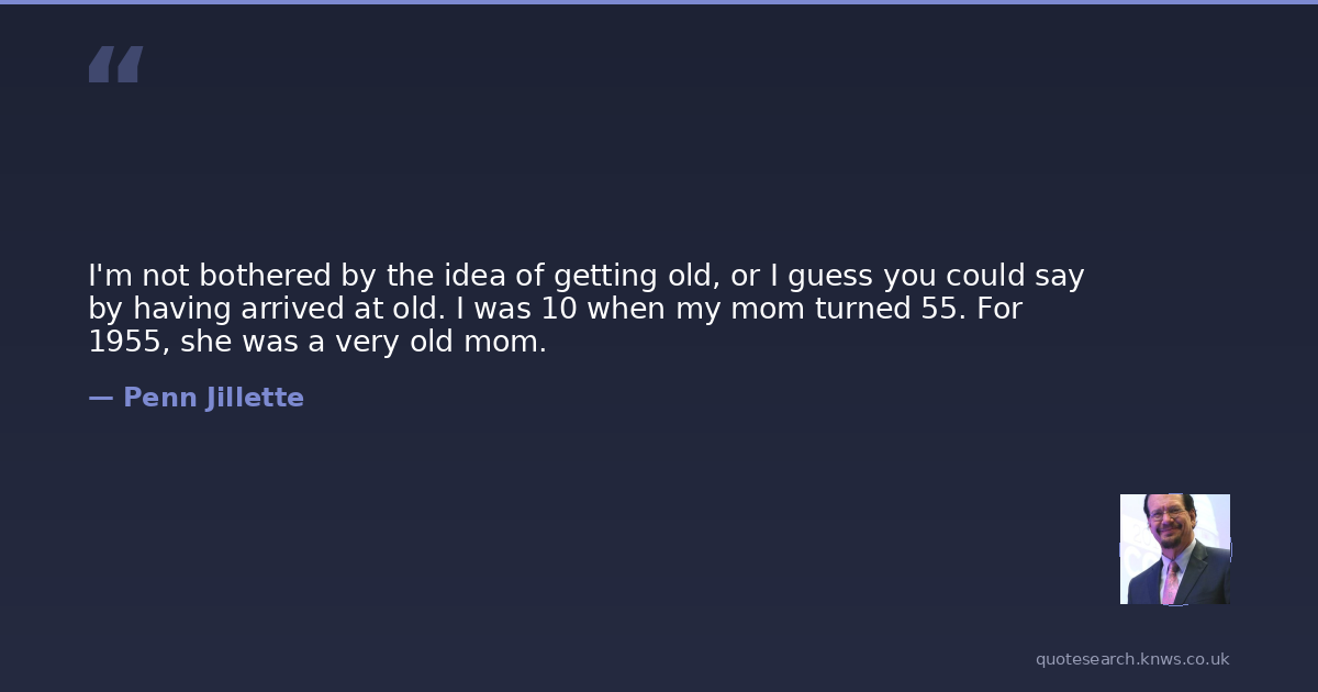 I'm not bothered by the idea of getting old, or I guess you could say by having arrived at old. I was 10 when my mom turned 55. For 1955, she was a very old mom.