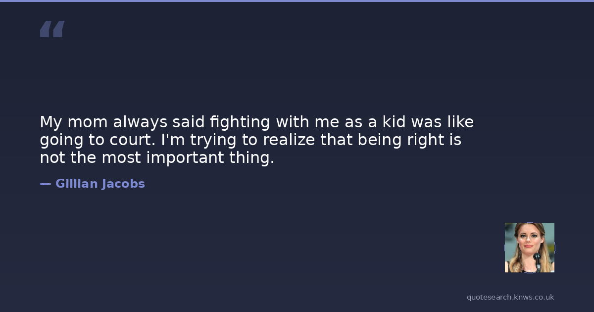 My mom always said fighting with me as a kid was like going to court. I'm trying to realize that being right is not the most important thing.