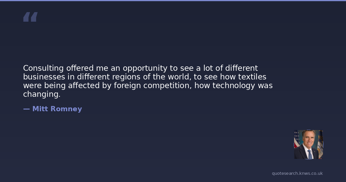 Consulting offered me an opportunity to see a lot of different businesses in different regions of the world, to see how textiles were being affected by foreign competition, how technology was changing.