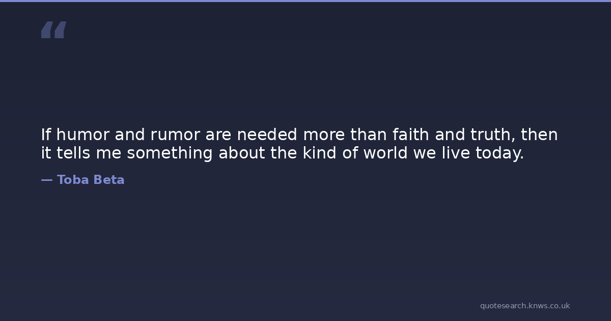 If humor and rumor are needed more than faith and truth, then it tells me something about the kind of world we live today.