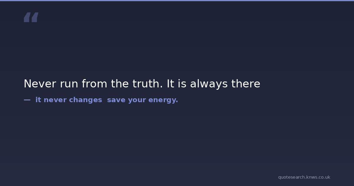 Never run from the truth. It is always there Steve Maraboli Download Image Share on X Share on Facebook Copy Link